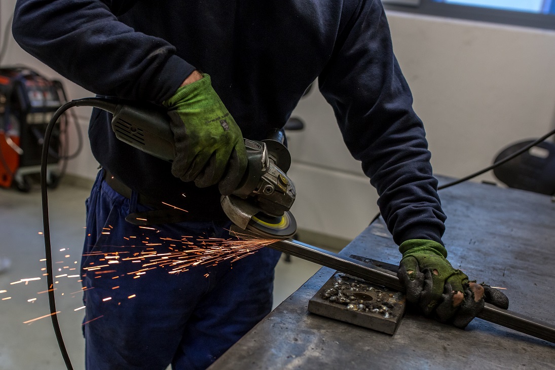 - Sägen, schweißen, stanzen und veredeln (verzinken und pulvern)