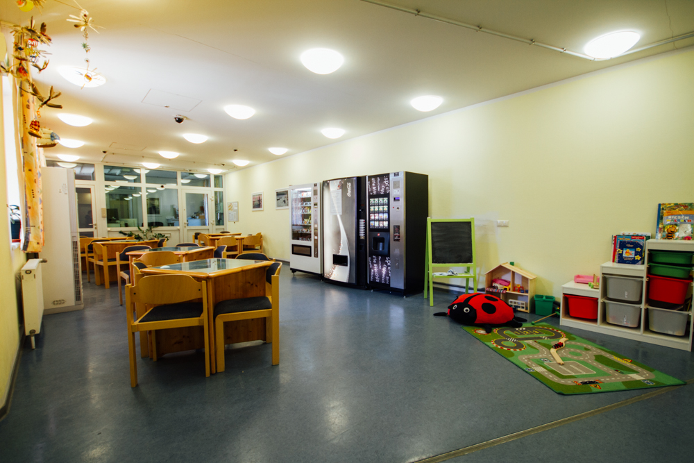 Gleichwohl haben Sie die Möglichkeit, einen Automateneinkauf im Besuchsbereich zu tätigen. Die Automaten sind mit Erfrischungen, Gebäck und Schokolade bestückt. Maximal können Sie pro Besuch für 15,- Euro einkaufen.
